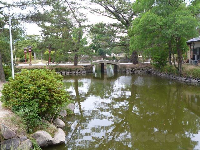 池の真ん中を貫く参道を進み、随神門を通って拝殿に向かいます。