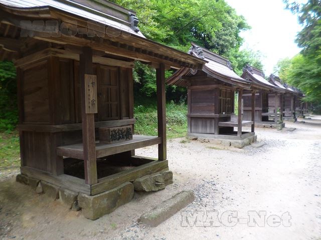 班田に向かって手前右手に子安神社があり、その先には下宮、伊勢宮、幸神社、鯉喰神社、矢喰神社、坂樹神社、祓神社の七つの末社が1列に鎮座射しています。