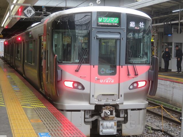 山陽本線が黄色い車体に対して、吉備線は赤が特徴です。