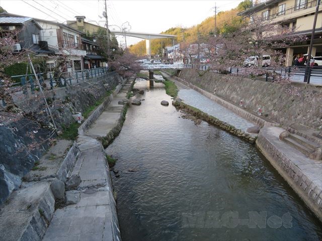 温泉街まで来ると、川辺も整備されておりコンクリートで固められています。
