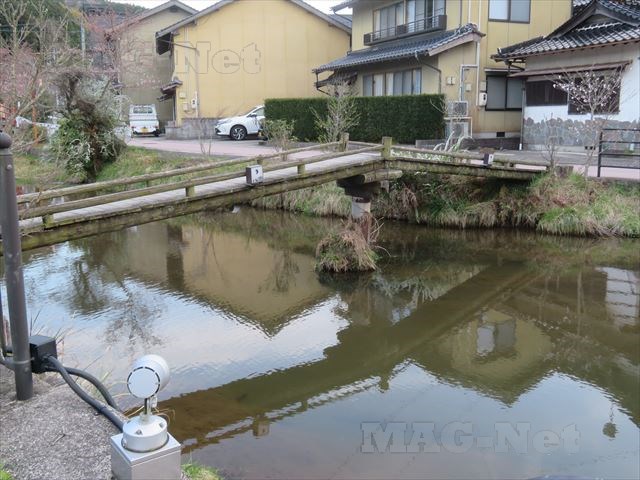 その奥に朱色の欄干をもつ橋が見えます。