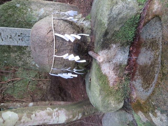 正面に拝殿、そしてその奥にあるのが球状の石で、そこから水が湧き出ています。