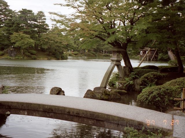 17世紀中期、加賀藩により金沢城の外郭に造営された藩庭を起源とする庭園で、広さ約3万坪の広大な池泉回遊式庭園です。