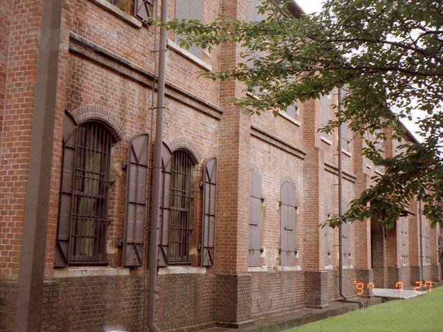 赤レンガの建物で、窓には鉄の扉が付いてます。