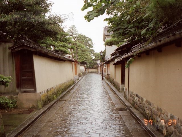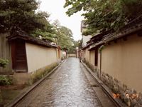 京都あるいは津和野や高山に比べるとほんの小さな一角ですが、繁華街「香林坊」から見ると土色の壁と石畳の道は実に情緒あるものです。