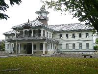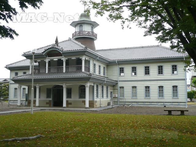 歴史博物館の敷地内には、かつての旧水海道小学校が残されており、中央の円形の塔が印象的です。
