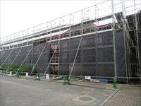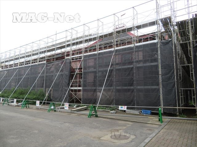 そこにはカバーで覆われた校舎があり、耐震工事の最中だそうです。