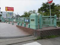 「まなべ橋」では銅が酸化して緑青を吹いたような緑色の欄干が目を引きます。