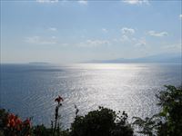 太平洋を眺めると、目の前の相模湾の先には大島でしょうか、うっすらと島の影が映っています。