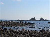 「ケープ舞鶴」から石段を進み、「三ツ石海岸」まで下りて行きます。
