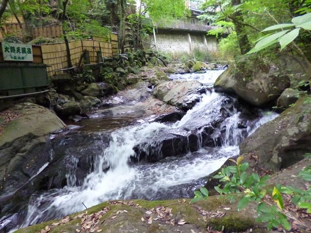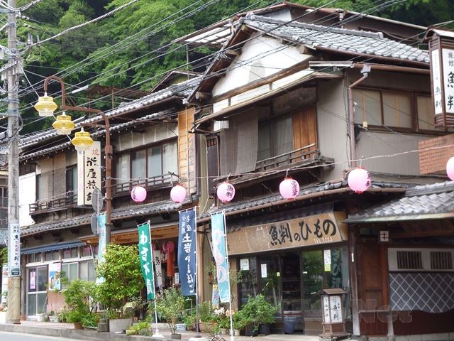 温泉地は、駅から山側に2kmほど進んだところにあります。