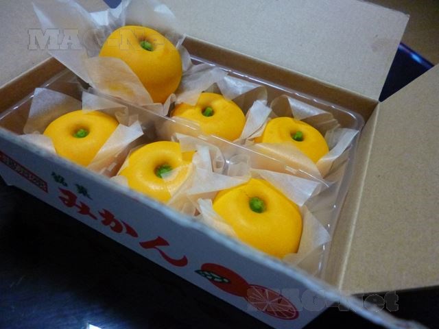 そしてお土産はミカンの形をした饅頭、こちらもミカンのオレンジ色がいっぱいのお菓子だったのでした。