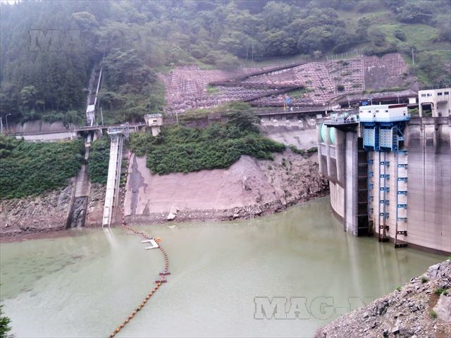バスは「二瀬ダム」の堤防の上を通り、対岸の山道に差し掛かります。