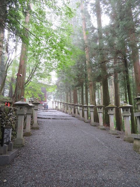 朱色に輝く「随身門」を潜り、灯篭の並ぶ参道を歩いて行きます。