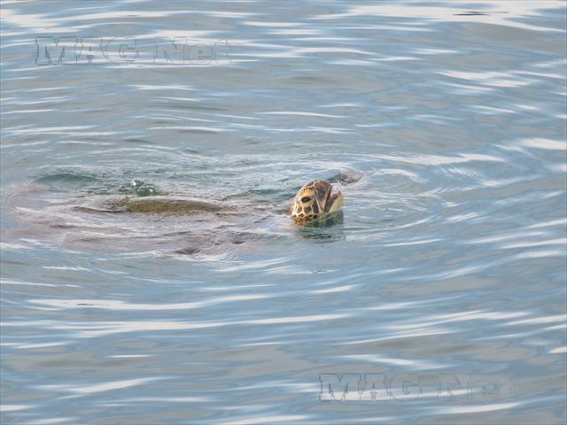 さすがの八丈島だけあって、いつか「八丈島歴史民俗資料館」で見たウミガメが本当に目の前に現れたのです。