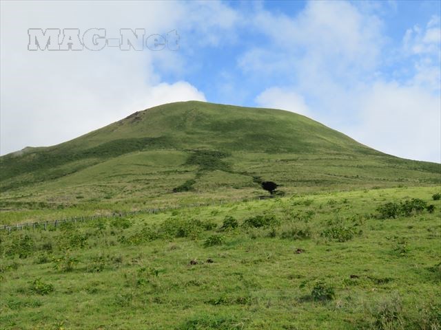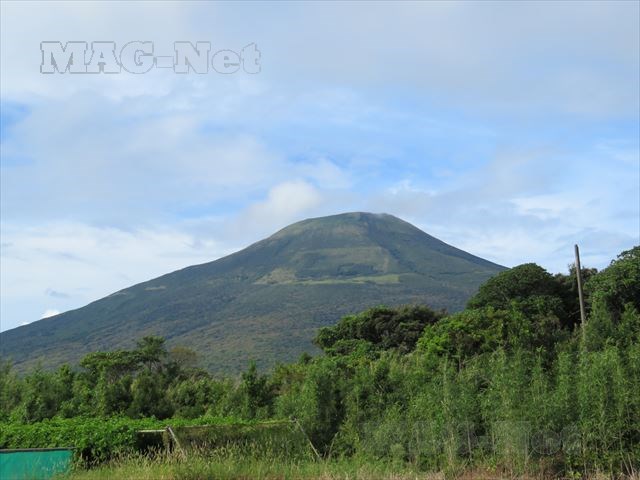 一方の山頂方向の山の姿はなだらかな優しい形をした山で、とてもこの島を造った火山がそびえているようには思えません。