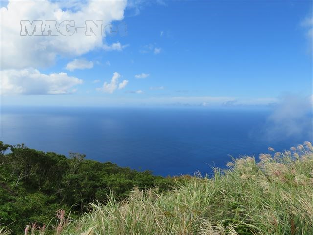 すすきの間からは、真っ青な太平洋が見えてきます。