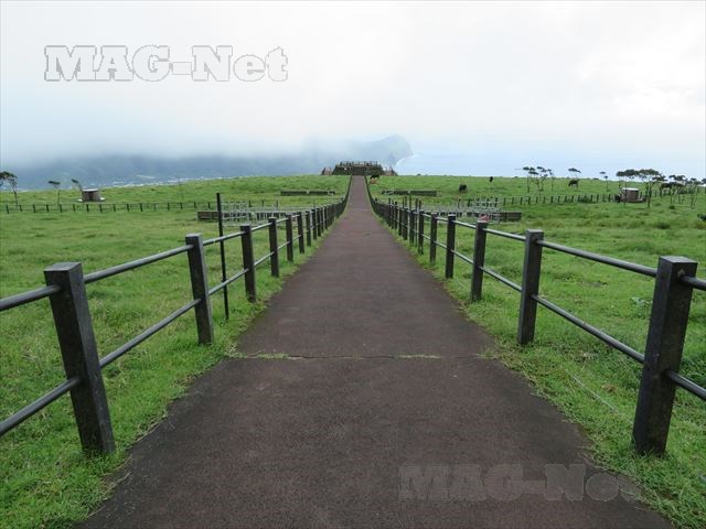 まっすぐに伸びた通路とその先の展望台からの八丈の町の眺めは、広々としており八丈の観光スポットにもなっています。