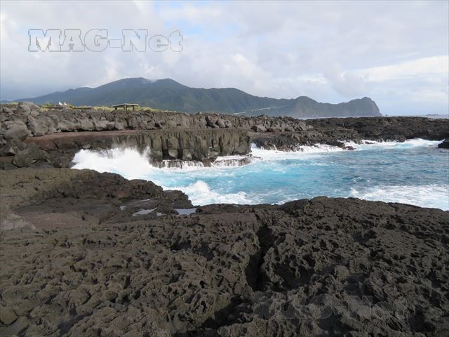 「八丈富士」から流れ出た溶岩が海岸線まで流れ着き、ここで一気に冷やされて岩となった場所です。