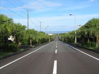 両側にヤシの木が並ぶまっすぐな道路が続きます。