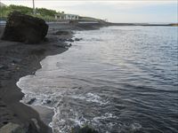 砂浜は火山岩が砕けて砂になったもので、一面真っ黒です。