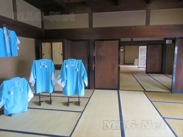 中に入ると、水色と白の新選組の羽織が飾られています。