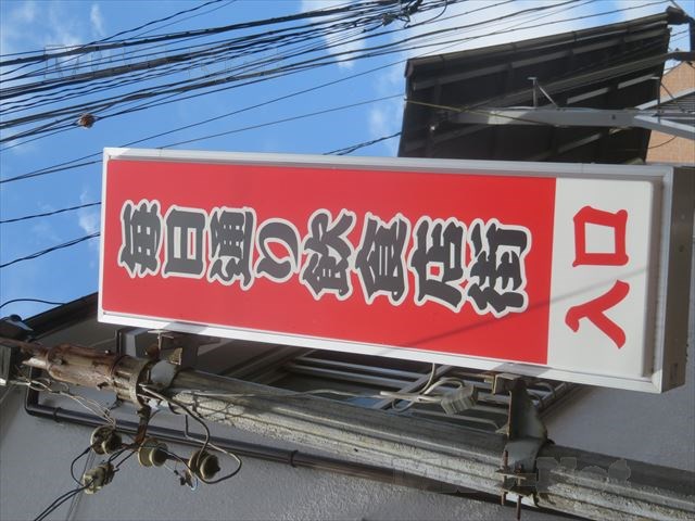 駅前の賑わいから少し離れて、夜になると人が集まる飲み屋街「毎日通り飲食店街」の看板が挙がっています。