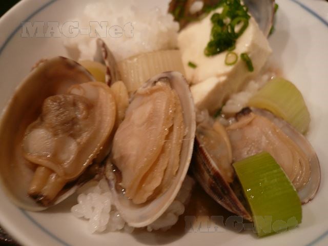 なんだただのぶっかけご飯かと見た目では思うのですが、アサリの出汁と身だくさんのアサリ、そして甘い白ネギが、いい味を出しています。