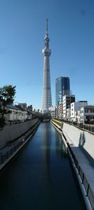 スカイツリーの横を流れる北十間川を東へ歩きます。