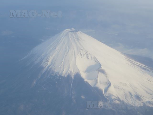 さて写真は、山頂が雪に覆われた別の日の富士山の様子です。
