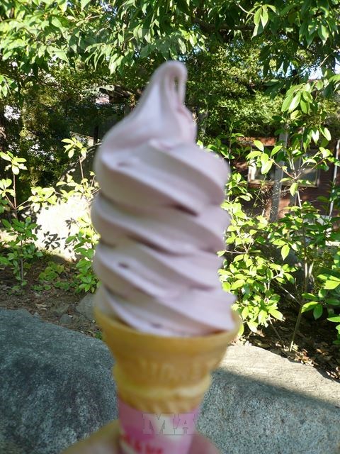 とはいえ、1房買っても持て余すということで困っていたところで、見つけました、巨峰ソフトクリームを。