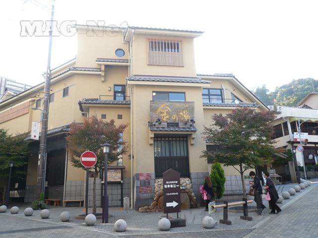 太閣通りに並ぶ土産物屋から湯本坂の交差点に位置するところに、公衆浴場の「金の湯」があります。