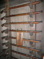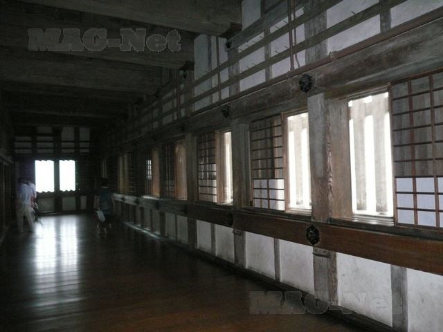 薄暗い城の内部の柱どれも立派なものばかりで、鉄砲や刀を掛けられるように柱に引掛けの切り込みが工夫されています。