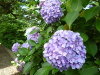 梅雨時期とあって、歩道には多くのアジサイが咲きほこっています。