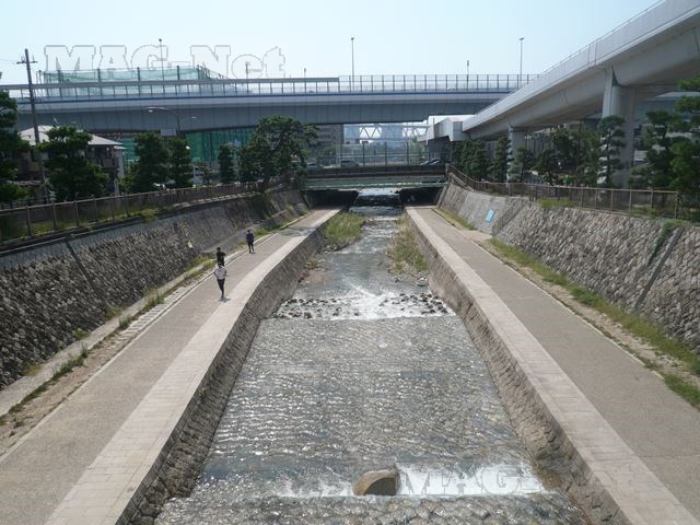 阪神電車の魚崎駅から、住吉川沿いを海側に下って行きます。
