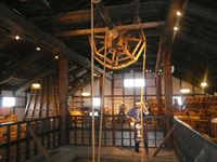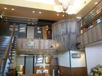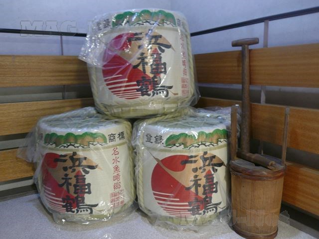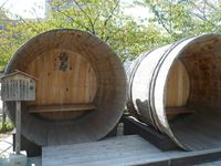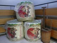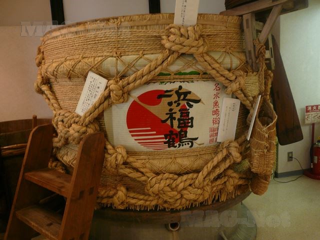 中に入ると酒造のときに使う大きな大桶が飾られています。