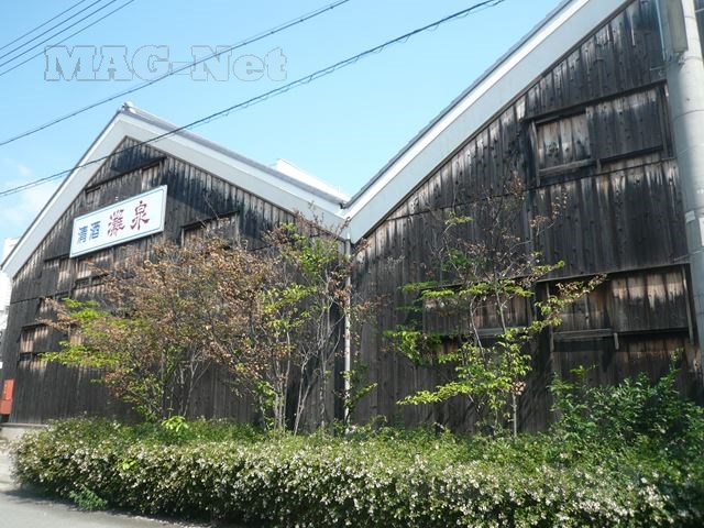 西に歩いて行くと、資料館で見る桶と釜とは違い清酒工場の縦長のタンクが目につきます。