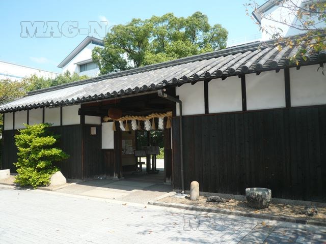 国道43号線の下をくぐり歩いて行くと、何やら黒っぽい木造の建物が見えてきます。