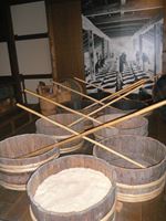 「菊正宗酒造記念館」では酒造りの道具が展示されており、また酒造りの工程を順路に沿って説明されています。