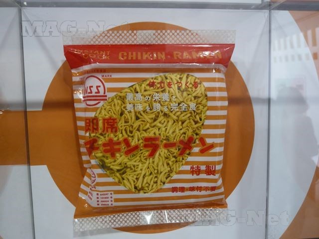 チキンラーメン、UFO、どん兵衛、そしてカップヌードルなど、歴代の日清の食品がすらりと並んでいます。