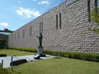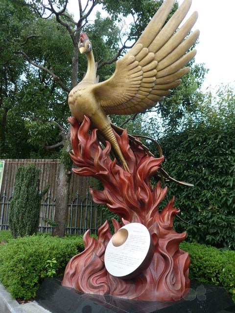 一風変わった建物が見え近づくと、その脇にマンが「火の鳥」の像が立っていました。