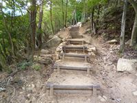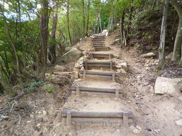 「表米神社」への山道は、階段の杭も整備されて一見整備された山道に見えます。