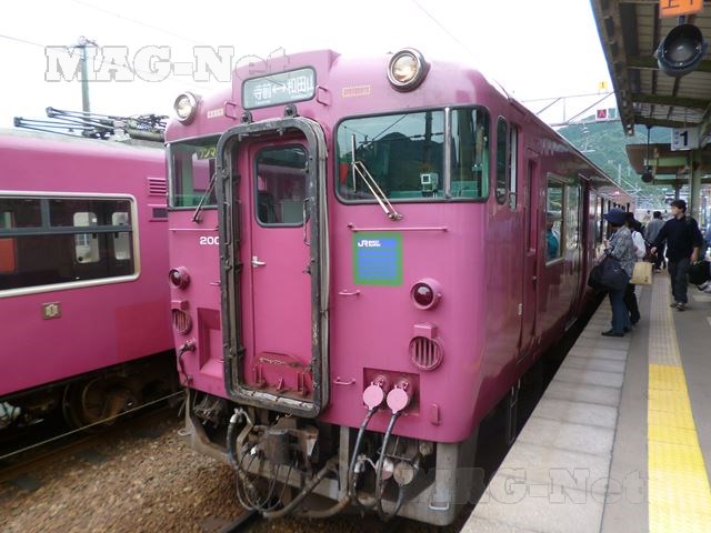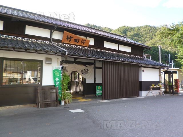 JR播但線の「竹田駅」は、和風の旅館の入り口を思わせる構えになっています。