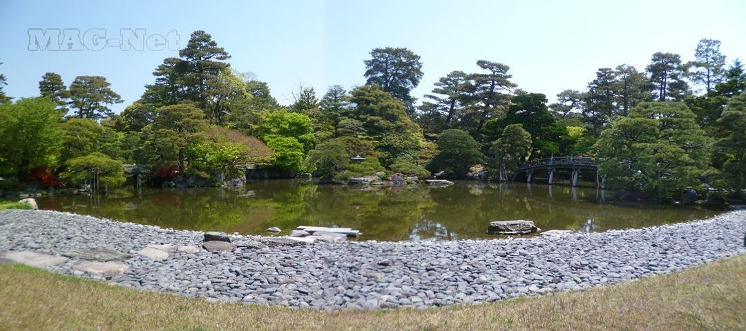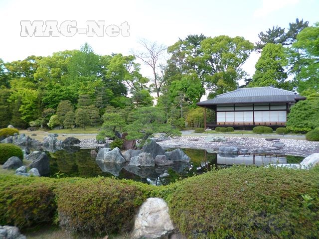 「二条城」の堀から外に出たところには、近年「清流園」と呼ばれる庭園が整備され、緑豊かな今の環境を維持しています。