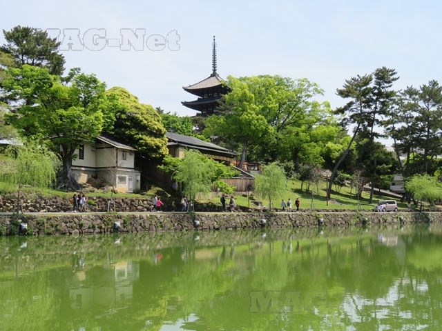 餅は近くの「猿沢の池」の畔で、興福寺の五重塔を見ながら食べます。
