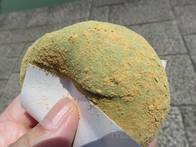 お目当てのうどん屋が開店前でしたので、隣の餅屋できなこをまぶしたよもぎ餅を買って、時間つぶしをします。