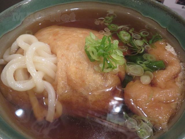 「巾着きつね」は、大きめの揚げを巾着状にして、中にうどんを詰めたものです。