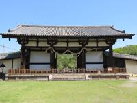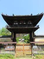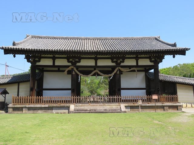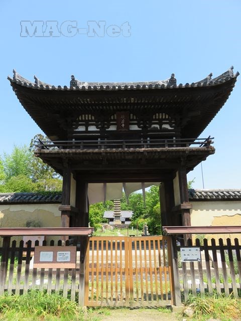 三間一戸八脚門の形式をもつ堂々とした門で、奈良時代から残るものです。