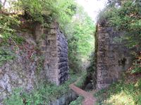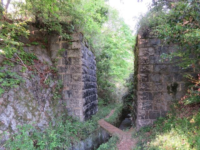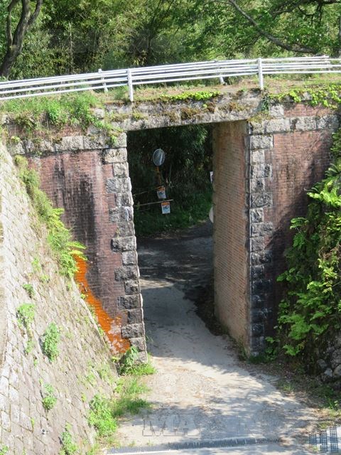 「鹿背山橋台」では、煉瓦を積んだ橋の土台が残っています。