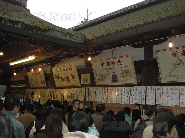 人に押されて本殿を廻り終えると、出てきた幣殿ではおみくじとお守りを求める人で、これまた一層ごった返していました。